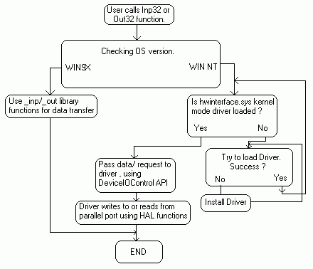 operating system is WIN9X, the DLL will use _inp() and _outp