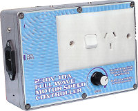 It’s designed for universal (brush-type) mains-voltage motors up to 2.3kW rating and offers full-wave speed control from near zero to maximum revs. It provides smooth low-speed operation with speed regulation under load at the touch of a knob.Over-current protection and limiting included. Solid state (50A) IGBT output and RF suppression.