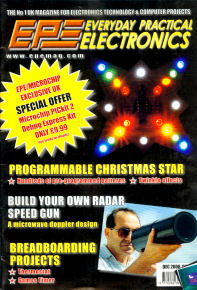 Also in this issue: Ingenuity Unlimited - readers' own circuit suggestions. Techno Talk - revisiting that staple product of hobby electronics assembly - stripboard, and how to develop stripboard projects on a PC. Recycle It! - how to make a variable voltage power supply from an old mobile phone charger. Interface, our column handling aspects of PC interfacing discusses serial port compatibility issues. Circuit Surgery - nomenclature of logic device families. PIC n MIX - our popular PICmicro feature offers an OLED interface for text or graphic display applications. Net Work - our Internet column highlights the latest web browser and anti-malware products.